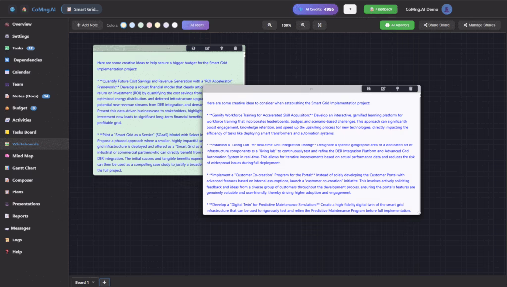 CoMng.AI learns from your organization’s project patterns, building a repository of institutional knowledge that makes every subsequent project smarter and more efficient. This isn’t just project management – it’s project intelligence.